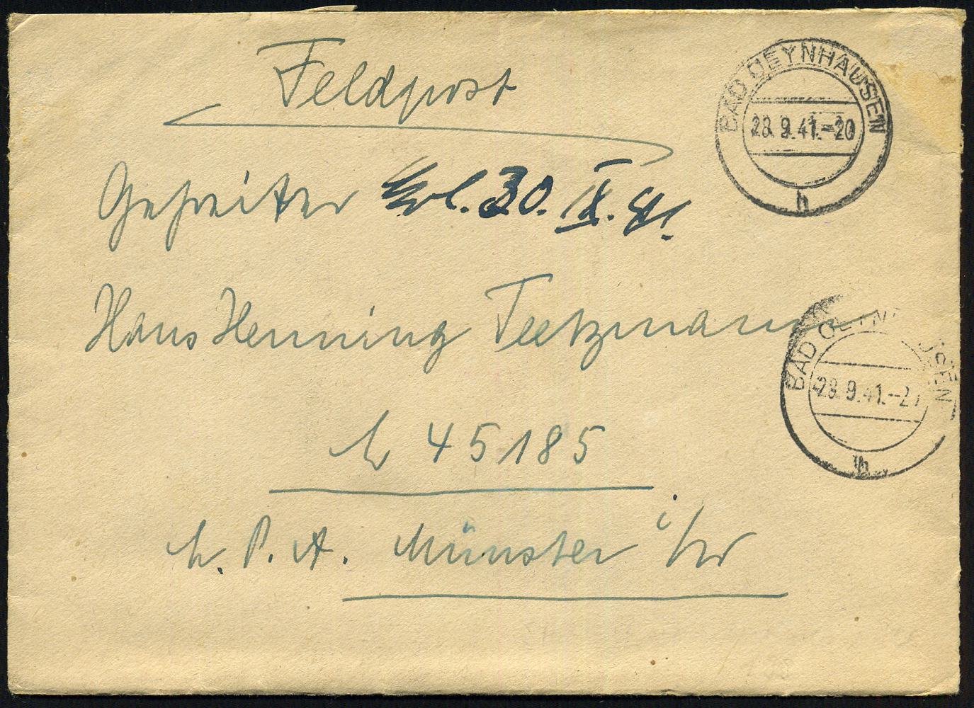 8749 | 12 € | PL-Raum 49.. (ohne Herford) : BAY OENHAUSEN/ h 1941 (28.9.) 2K-Steg auf Feldpost-Bf. + Inhalt an Fp.-Nr. L 45 185 = Stab Flak-Scheinwerfer Abt. 199 (LGPA Münster) | ![]() ![]() | |