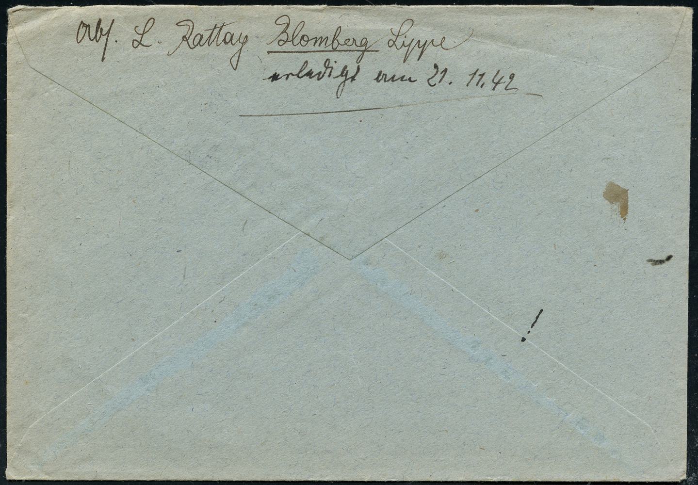 8771 | 12 € | PL-Raum 49.. (ohne Herford) : BLOMBERG/ (LIPPE)/ b 1942 (10.11.) 1K-Brücke auf Feldpost-Bf. an Fp.-Nr. L 44 254 = 3./ Luftwaffen-Regt. 211 | ![]() ![]() | |