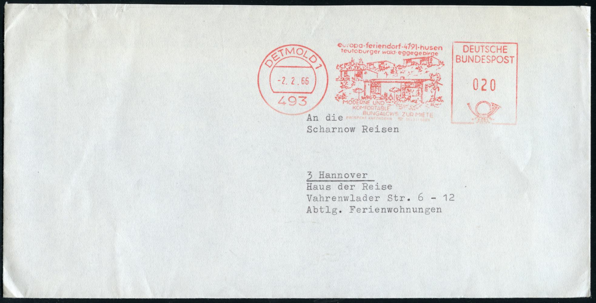 8792 | 10 € | PL-Raum 49.. (ohne Herford) : 493 DETMOLD 1/ europa-ferdiendorf - 4791 husen../ BUNGALOWS ZUR MIETE 1966 (2.2.) AFS Postalia (Ferienhäuser) Fern-Bf. (Dü.E-23 B) | ![]() | |