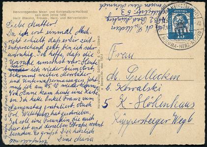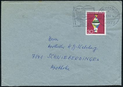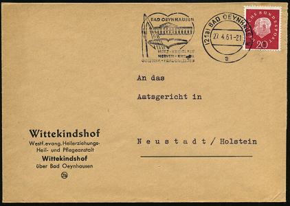 8753 | 14 € | PL-Raum 49.. (ohne Herford) : (21a) BAD OEYNHAUSEN/ a/ HERZ-KREISLAUF/ NERVEN-REUMA.. 1961 (27.4.) MWSt auf Vordruck-Bf.: Wittekindshof, Westf.-evang. Heilerziehungs-, Heil-u.Pflegeanstalt , Fernbf. (Bo.6 A) | ![]() | |