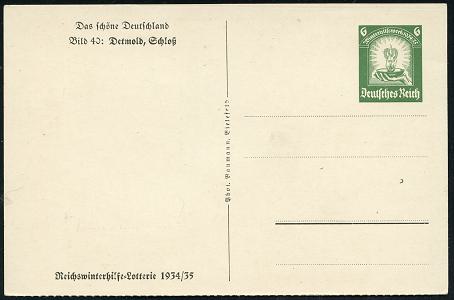 8779 | 10 € | PL-Raum 49.. (ohne Herford) : Detmold 1934 6 Pf. BiP "Winterhilfswerk-Lotterie", grün: Schloß-Turm (halbe Karte) ungebr. (Mi.P 254/40) | ![]() ![]() | |