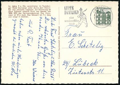 8789 | 12 € | PL-Raum 49.. (ohne Herford) : 493 DETMOLD 1/ mb/ LIPPE/ DETMOD/ eine/ wunderschöne/ Stadt 1965 (31.8.) MWSt mit neuer PLZ (napoleon. Soldat des Rheinbundes) auf Color-Foto-Ak.: GRUSS VOM Hermannsdenkmal.. (5 Ansichten) Bedarf (Bo.6 A II = UB "mb") | ![]() ![]() | |