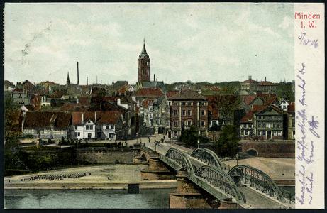 8840 | 20 € | PL-Raum 49.. (ohne Herford) : Minden i.W. 1906 (5.10.) Color-Litho-Ak.: Minden i. W. (Ortsbild mit Brücke) Bahnpost-Oval: CÖLN (RHEIN) - HANNOVER/ BAHNPOST/ZUG 13 n. Herborn (ohne Uhv.) | ![]() ![]() | |