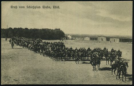 8891 | 14 € | 5000 KÖLN (Allgem. Teil, Tagesstempel, Ganzsachen etc.) : Köln-Wahn 1911 (26.8.) 1K-Gitter: WAHN (Rheinl.)-/SCHIESSPLATZ auf s/w.-Foto-Ak.: berittenes Artillerie-Regiment in Aufstellung , Fern-Kt. n. Esslingen weitere Belege "Wahn" siehe auch Sektion: PL-Raum 50.. (Mi.85 I) | ![]() ![]() | |