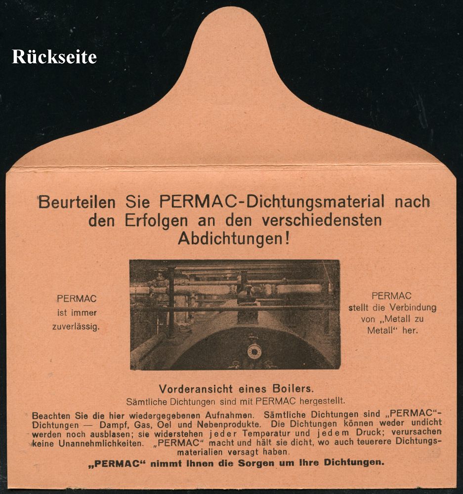 9060 | 12 € | 5000 KÖLN (Post-Freistempel) : KÖLN 1/ g/ DEUTSCHES/ REICH 1936 (4.7.) PFS "Achteck" zweizeilig, 3 Pf. mit UB "g" klar auf (halber) Reklame-Kt.: RATIONA GMBH mit Abbildung eines Boilers "PERMAC" (Dü.D-5) | ![]() ![]() ![]() | |
