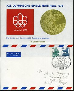 9473 | 18 € | 5090 LEVERKUSEN (Allgem. Abteilung, Sonder- und Maschinenstempel) : 5090 LEVERKUSEN 1/ AUSSTELLUNG "PHILATELIE/ DER OLYMP.SPIELE".. 1976 (15.11.) SSt auf Privat-Flp.-Streifband 25 Pf.+ 50 Pf. Unfall: XXI. OLYMP. SPIELE MONTREAL.. (Mi. Berlin PS 6) rs. Goldmedaille, Olympia-Logo Montreal etc., Übersee-Flp.-Streifband (Bo.34) | ![]() | |