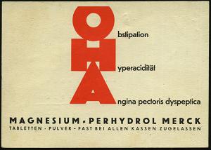 1135 | 22 € | 6100 Darmstadt Absender-Freistempel : DARMSTADT/ 2/ E.MERCK 1931 (9.5.) AFS Francotyp "Bogenrechteck" auf Reklame-Kt.: Magnesium-Perhydrol , Layout im Bauhaustil! (Dü.E-1Ah) | ![]() ![]() | |