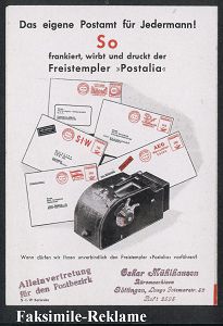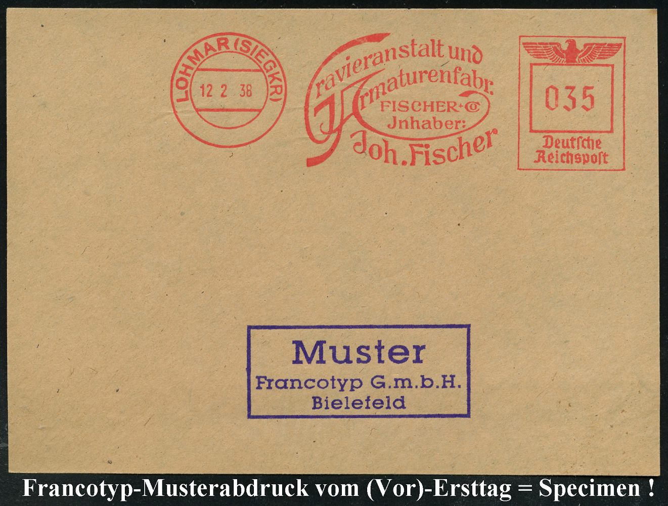 9752 | 35 € | PL-Raum 52 : LOHMAR (SIEGKR)/ Gravieranstalt und/ Armaturfabr./ FISCHER + Co/ Jnhaber:/ Joh.Fischer 1938 (12.2.) AFS-Musterabdruck Francotyp "Reichsadler" , glasklar gest. Francotyp-Musterblatt vom (Vor)-Ersttag !, selten! (Dü.E-5CGo) | ![]() ![]() | |