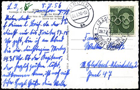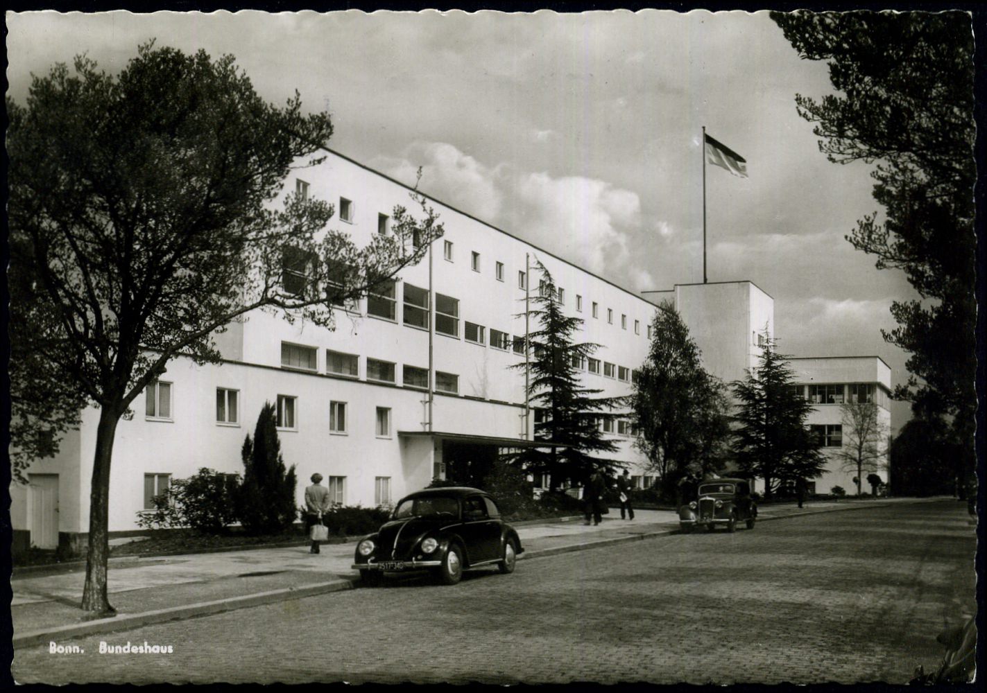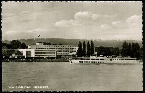 9820 | 20 € | 5300 BONN (Allgem. Belege, Tagesstempel, Ganzsachen etc.) : Bonn-Bundestag 1955/57 2 verschiedene s/w.-Foto-Ak.: Bundeshaus (Bundestag) Außenansichten , beide Bedarfs-Karten, 2 Belege ("Tempo"- bzw. "Rhein-Foto"-Verlag) | ![]() ![]() ![]() | |