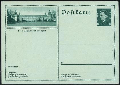 9810 | 10 € | 5300 BONN (Allgem. Belege, Tagesstempel, Ganzsachen etc.) : Bonn 1930 8 Pf. BiP Ebert, grün: Hofgarten mit Universität , ungebr. (Mi.P 189/06) | ![]() | |