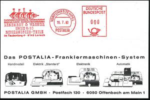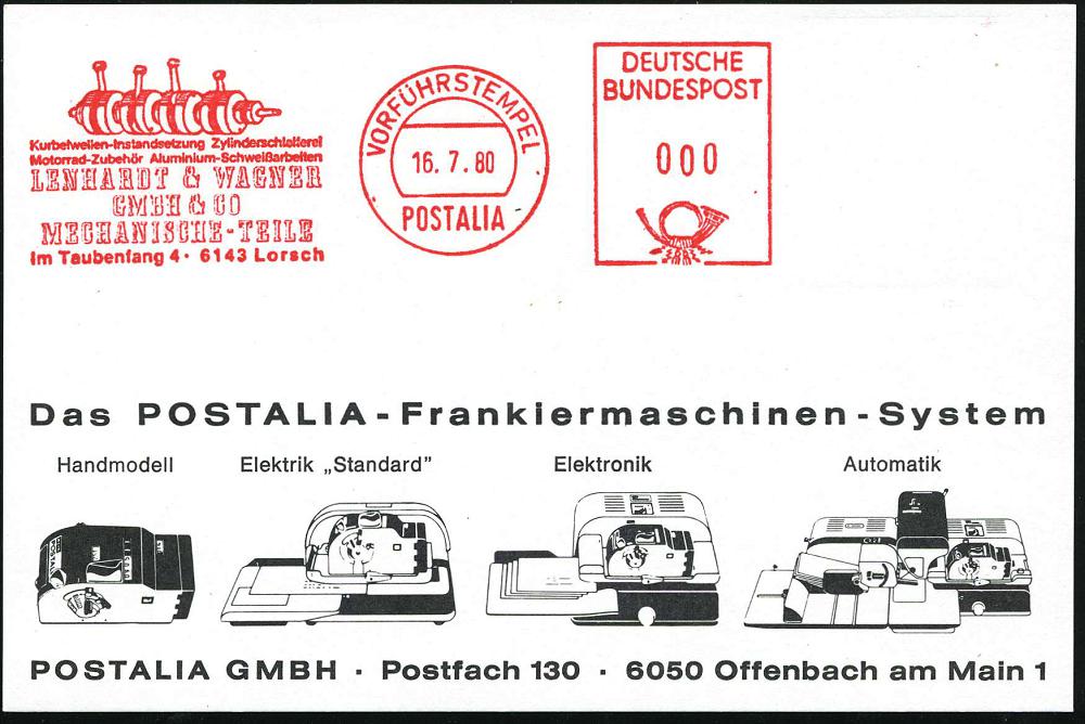 1223 | 18 € | POSTLEITRAUM 6100 (OHNE DARMSTADT) : 6143 Lorsch 1980 (16.7.) AFS: VORFÜHRSTEMPEL/POSTALIA/Kurbelwellen-Instandsetung Zylinderschleiferei/Motorrad-Zubehör../LENHARDT & WAGNER.. (Kurbelwelle) seltene Postalia-Musterkt.! (= Specimen) | ![]() | |