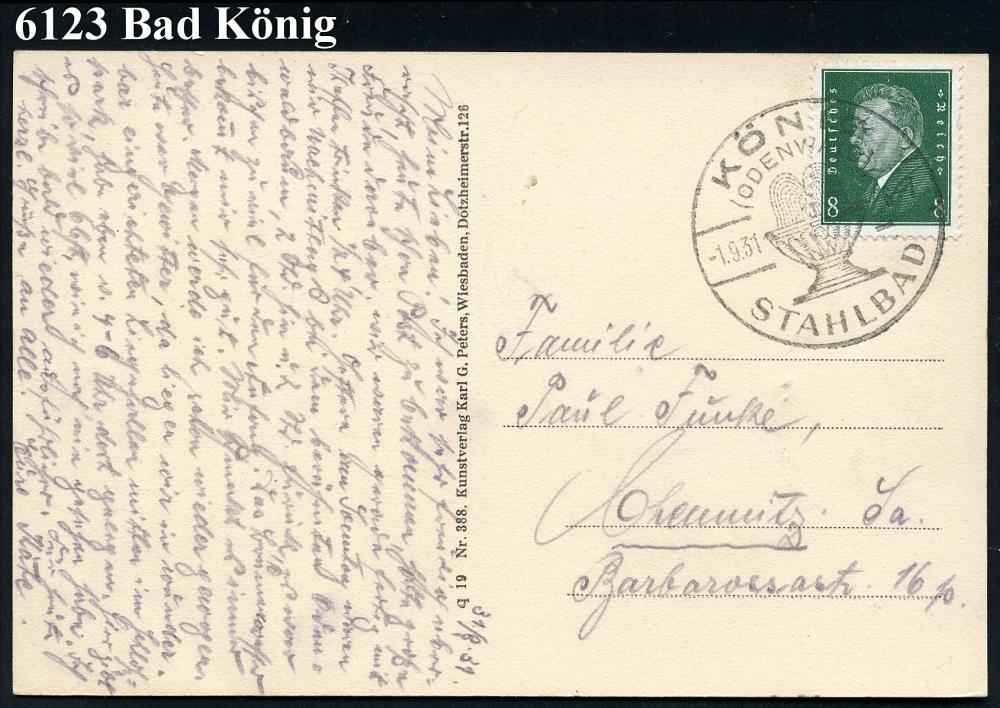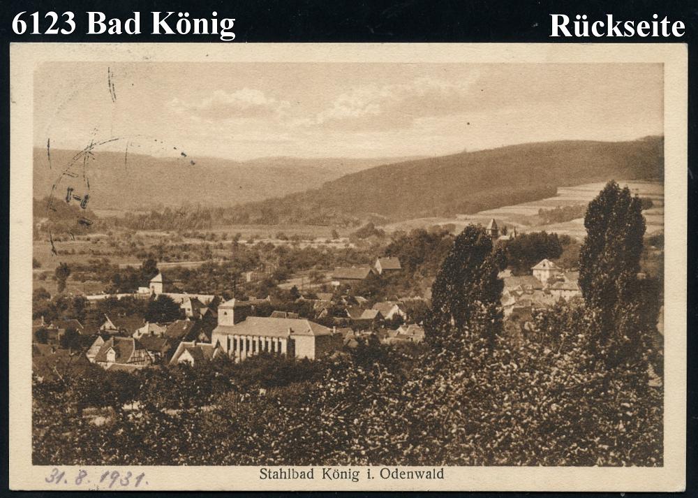1217 | 15 € | POSTLEITRAUM 6100 (OHNE DARMSTADT) : KÖNIG/ (ODENW)/ STAHLBAD 1931 (1.9.) HWSt (Brunnen) klar gest. monochrome Foto-Ak.: Stahlbad König.., Bedarf (Bo.1) | ![]() ![]() | |