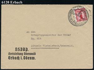 1193 | 18 € | POSTLEITRAUM 6100 (OHNE DARMSTADT) : ERBACH (ODENW)/ Weltberühmte Sammlungen 1941 (12.7.) HWSt (Schloß(turm) = Elfenbein-Museum!) auf EF Parteidienst 12 Pf. (Mi.D 150 EF) Dienst-Bf.: NSDAP, Kreisleitung Odenwald, (Bo.2) | ![]() | |