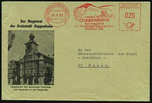1212 | 12 € | POSTLEITRAUM 6100 (OHNE DARMSTADT) : (16) HEPPENHEIM (BERGSTR)/ Der Magistrat.. 1962 (24.8.) AFS = Weintraube (vor Ortsbild) kommunaler SU. mit Rathaus (Dü.E-23CO) | ![]() | |