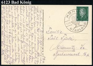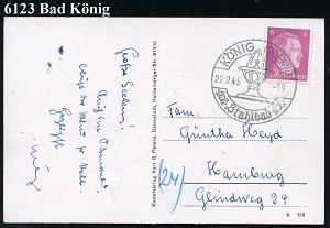 1218 | 25 € | POSTLEITRAUM 6100 (OHNE DARMSTADT) : KÖNIG (ODENW)/ Stahlbad 1945 (22.2.) HWSt (Brunnen) klar s/w.-Foto-Ak.: Bad König Blick vom Wiesacker, Bedarf sehr spät!, Bochmann 1945 unbekannt! (Bo.2) | ![]() ![]() | |