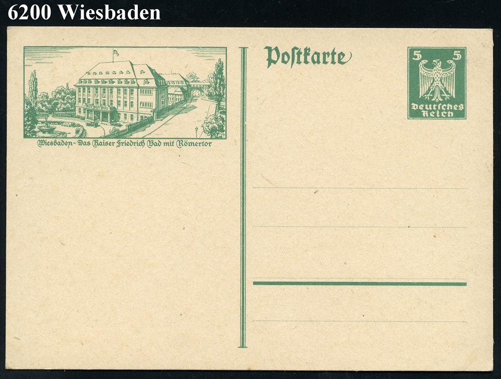 1257 | 16 € | 6200 Wiesbaden Allgem. Belege : Wiesbaden 1926 5 Pf. BiP Adler, grün: Das Kaiser Friedrich-Bad mit Römertor , ungebr. (Mi.P 164/027) | ![]() | |