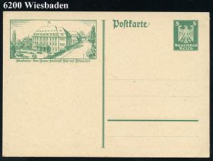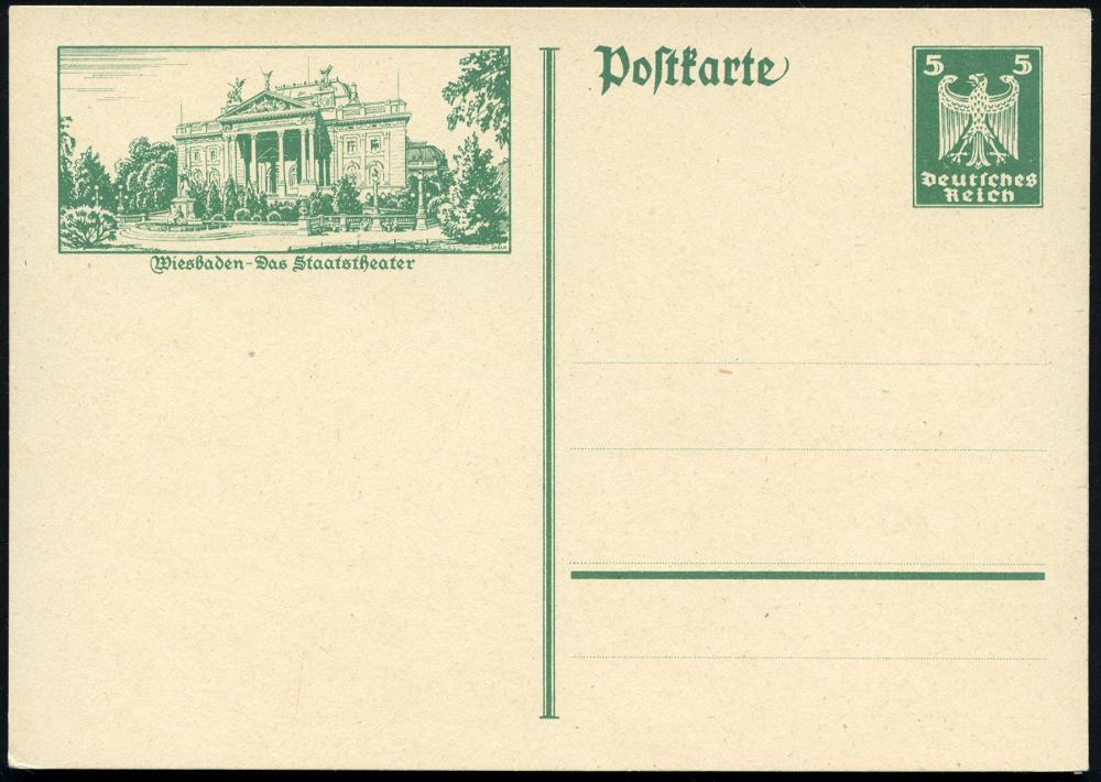 1258 | 14 € | 6200 Wiesbaden Allgem. Belege : Wiesbaden 1926 5 Pf. BiP Adler, grün: Das Staatstheater , ungebr. (Mi.P 164/026) | ![]() | |