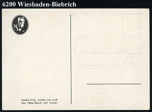 1260 | 11 € | 6200 Wiesbaden Allgem. Belege : Wiesbaden-Biebrich 1935 (ca.) Kupferdruck-Foto-Ak.: Sektkellerei Henkell.. Gr. Lager-Keller (rs. Logo) ungebr. | ![]() ![]() | |
