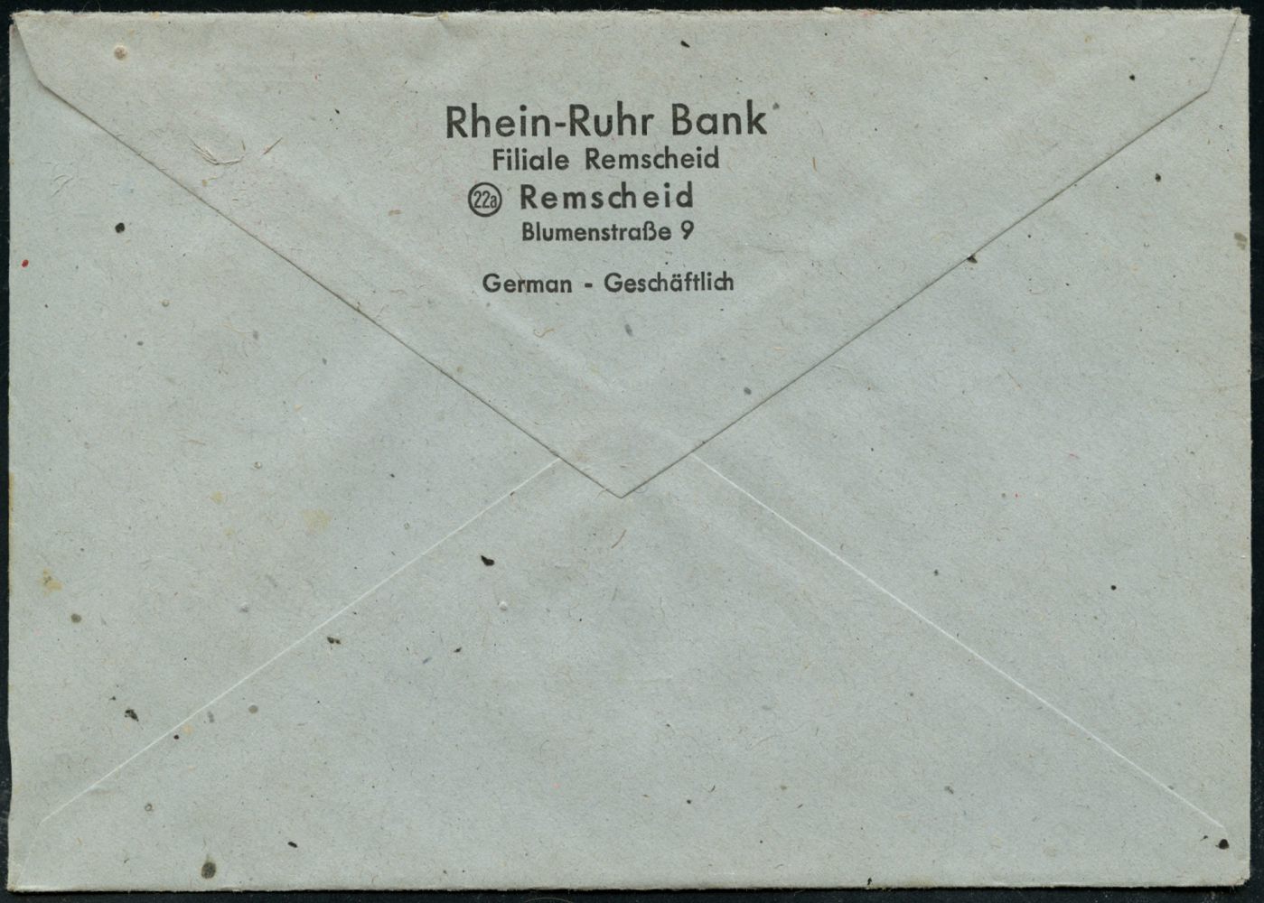 10370 | 8 € | 5630 REMSCHEID : (22a) REMSCHEID 1/ a/ DEUTSCHE/ BUNDESPOST 1952 (18.12.) PFS "Achteck Posthorn" 4 (Pf.) auf Orts-Drs.-Bf. (Dü.D-16, Nr.272 = Posthorn mit 4 Blitzen) | ![]() | |
