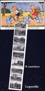 10385 | 18 € | 5630 REMSCHEID : (22a) REMSCHEID 5 1960 (15.6.) Rucksack-Leporello-Color-Ak.: "Gruß aus dem Bergischen Land" (Radfahrer-Paar) mit 10 s/w.-Ansichten vom Berg. Land, Bedarf | ![]() ![]() | |