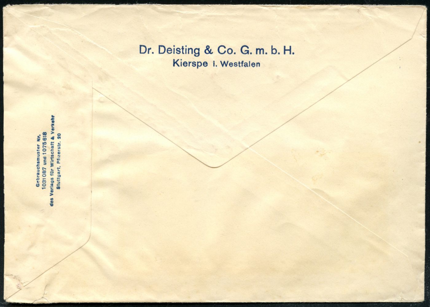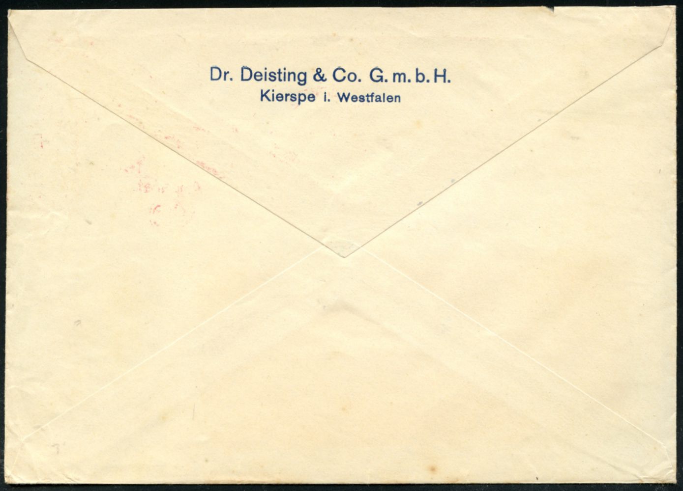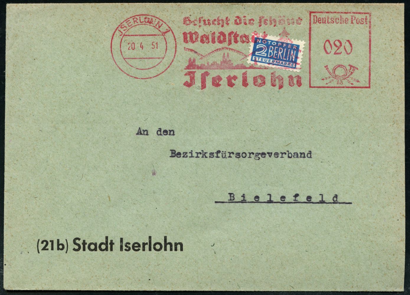 10836 | 35 € | PL-Raum 58 : ISERLOHN 1/ Original Sprenger Sporen/ Gegr.1872/ Herm.Sprenger 1949 (24.5.) AFS Francotyp "Posthorn" 020 Pf. irrtümlich auf 2 Pf. NoB (= Vorausentwertung) auf eigentlich notopfer-befreitem Firmen-Bf. in die SBZ an die Messe, Leipzig, dort unbeanstadet, obwohl die 2 Pf. NoB zur Unterstützung von W e s t - Berlin diente, seltener Beleg! (Dü.E-20CG) | ![]() | |