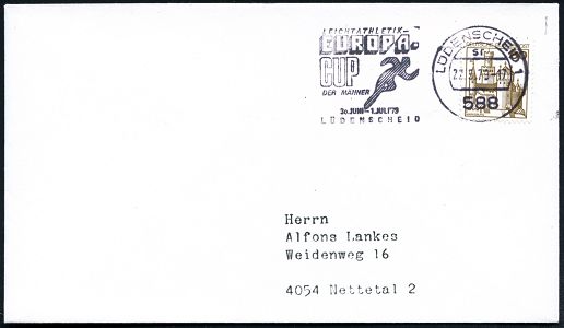10891 | 10 € | PL-Raum 58 : 588 LÜDENSCHEID 1/ sr/ LEICHTATHLETIK-/ EUROPA-/ CUP/ DER MÄNNER.. 1979 (22.5.) MWSt = Läufer-Piktogramm , klar gest. Inl.-Bf. (Bo.34 A II = UB "sr") | ![]() | |