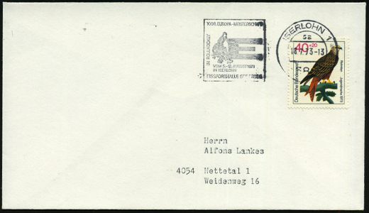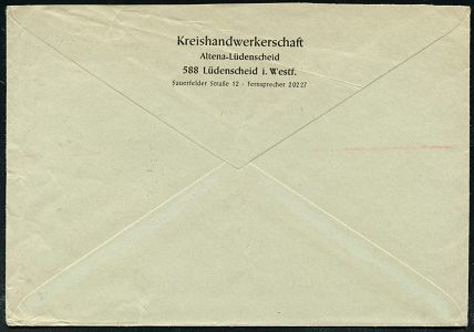 10896 | 14 € | PL-Raum 58 : 5880 LÜDENSCHEID 1/ 50 Jahre Tag d.Briefmarke 1986 (26.10.) SSt auf entspr. Sonderumschlag mit eingedrucktem Sonder-RZ: 5880 Lüdenscheid 1/t d b = t (ag) d(er) b(riefmarke), 80 Pf. "Tag der Briefmarke" (Mi.1300 u.a.) Inl.-R-Bf. R-Bf. (Mi.1300 u.a.) | ![]() | |