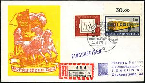 1320 | 35 € | 6200 Wiesbaden Sonder- und Hand-Werbestempel : 62 WIESBADEN/ TAG/ DER/ BRIEFMARKE.. 1971 (24.10.) SSt + Sonder-RZ: 62 Wiesbaden, 1 TAG/DER/BRIEFMARKE 1971 (NEZ Kat. Nr. 202) Inl.-R-SU., Aufl. nur 551 R-Belege! (Bo.211) | ![]() | |
