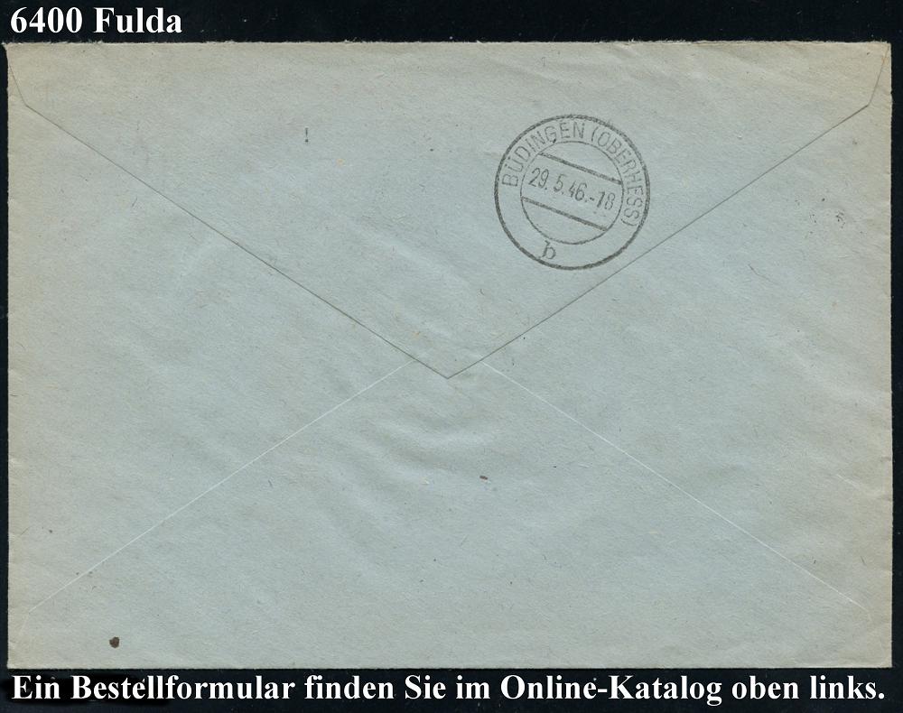 1977 | 35 € | 6400 Fulda Post- und Absender-Freistempel : FULDA/ 75 JAHRE/ 1807 1942/ EMAILLIERWER AG.. 1946 (28.5.) aptierter AFS Francotyp "Reichadler" = entfernt + "Reichs" = Notmaßnahme! 084 Pf + 1K-Gitter: FULDA/b + RZ: Fulda 1/a (Firmen-Logo: 2 Pyramiden) klar gest. Fern-R-Bf. n. Büdingen, Hess., rs. AS. (Dü.E-13 Y.127h) | ![]() ![]() | |