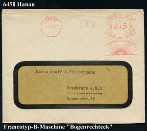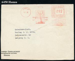 2109 | 16 € | 6450 Hanau Post- und Absender-Freistempel : HANAU/ Original Hanau/ Seit 1906/ künstl.Höhensonne.. 1932 (8.2.) AFS Francotyp "Mäanderrechteck" (Mann vor Sonne) Teil-Bf. (Dü.E-2BAh) | ![]() | |