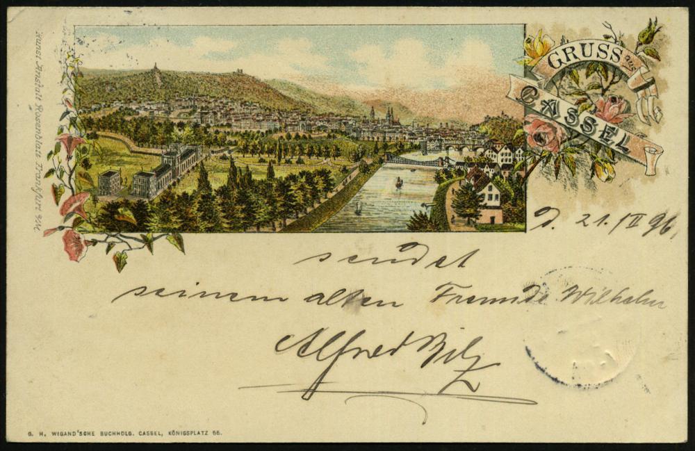 2230 | 20 € | 3500 Kassel Allgem. Belege : Kassel 1896 (21.2.) 1K-Gitterbrücke: CASSEL/* 1 k klar auf Color-Litho-Ak.: Fulda-Brücken, Orangerie, Bedarf (Mi.46) | ![]() ![]() | |