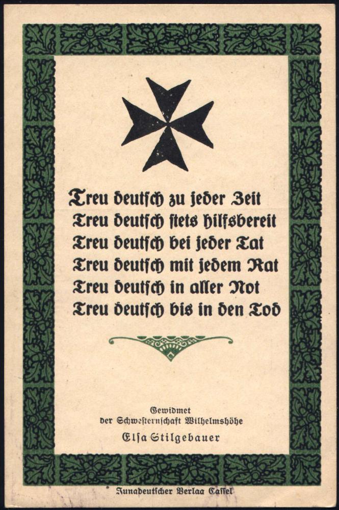 2247 | 20 € | 3500 Kassel Allgem. Belege : Kassel 1930 (ca.) seltene, zweifarbige Color-Propaganda-Ak. des Jungdeutschen Verlages (Malteserkreuz) mit Sinnspruch, ungebr. = Jungdeut-scher Orden ,1920 von A. Marauhn in Kassel gegr., 1930-33 Deutsche Staatspartei (1933 aufgelöst) | ![]() | |
