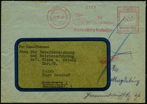 2402 | 18 € | 3500 Kassel Absender-Freistempel : KASSEL 1/ Gartenbau-/ Berufsgenossenschaft/ L.49 1939 (9.10.) AFS Francotyp "Reichsadler" auf Vordruck-Bf.: Gartenbau-Berufsgenossenschaft Reichsunfallversicherung.. (rs. Klappenriß geschl.) Fern-Bf., vergl. Nr.2390 (Dü.E-5CGh) | ![]() | |