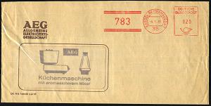 2441 | 16 € | 3500 Kassel Absender-Freistempel : 35 KASSEL-BETTENHAUSEN 1/ 7 8 3 1965 (4.1.) anonymer AFS Postalia mit Nrn.-Klischee, sogen. "Interims-Freistempel" (Freistempel für Firmen zum ausprobieren) für maximal 4 Wochen zulässig!, AEG-Reklame-Bf.: Küchenmaschinen (Dü.E-26 B) | ![]() | |