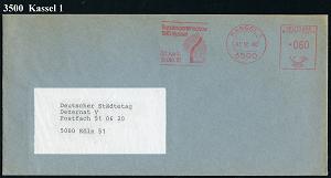 2449 | 14 € | 3500 Kassel Absender-Freistempel : 3500 KASSEL 1/ Bundesgartenschau/ 1981.. 1980 (1.12.) AFS Francotyp (= Buga-Logo) Kommunal-Bf. (Dü.E-26, nur 1980-81 verwendet) | ![]() | |