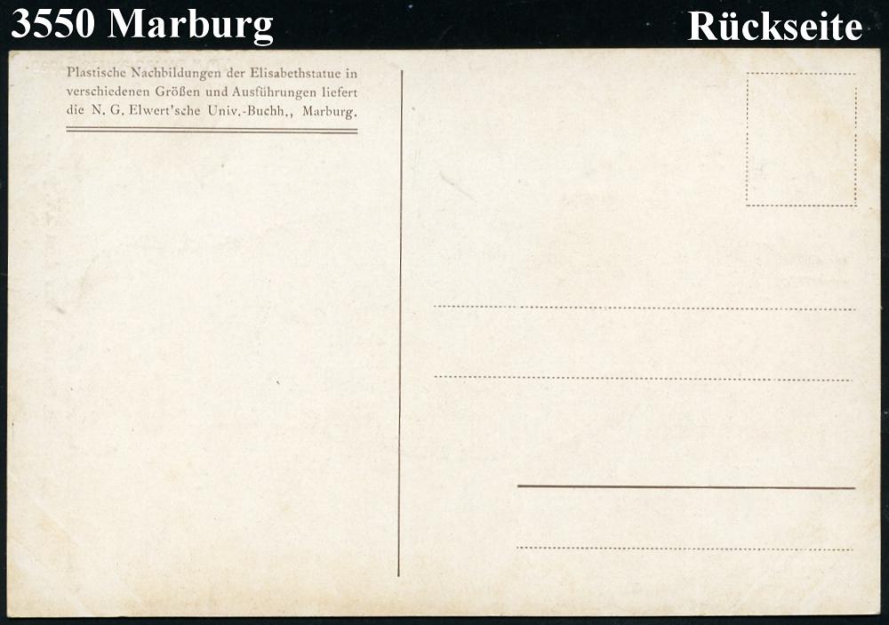 2548 | 12 € | 3550 MARBURG : Marburg 1900 (ca.) Color-Ak.: Statue der Hl. Elisabeth (mit Modell der Elisabethkirche) ungebr. (N.G. Elvert´sche Buchhandlung, Marburg) | ![]() ![]() | |