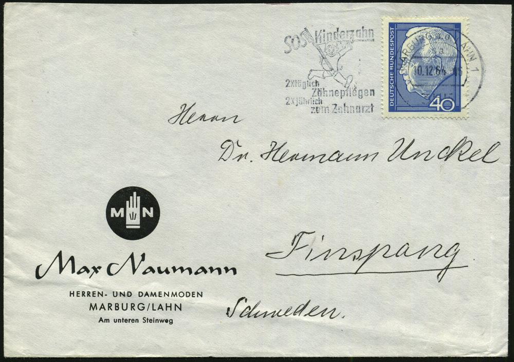 2574 | 16 € | 3550 MARBURG : 355 MARBURG a.d.LAHN 1/ sa/ SOS Kinderzahn/ 2x tägl./ Zähnepflegen/ 2x jährl./ zum Zahnarzt 1964 (10.12.) seltener MWSt (Kind mit großer Zahnbürste) Bedarfs-Bf.! (Bo.20 A) | ![]() | |