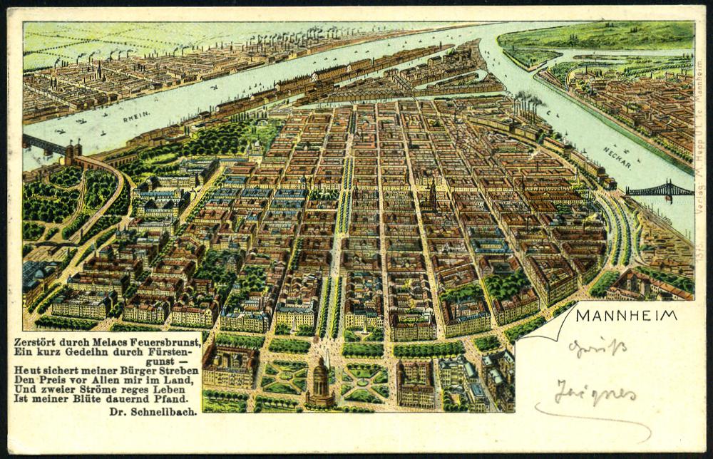 2674 | 50 € | 6800 Mannheim Allgemeine Belege : MANNHEIM/ *1c 1900 (14.4.) 1K-Gitter auf PP 5 Pf. Krone, grün: MANNHEIM.. = Stadt aus der Vogelschau mit Neckar- u. Rhein-Brücke = quadratische "Idealstadt" nach Plänen des Kurfürsten Friedrich IV. (ohne Neujahrs-Text) seltene Bedarfs-Karte (Frech.PP 9/F 65-01) | ![]() ![]() | |