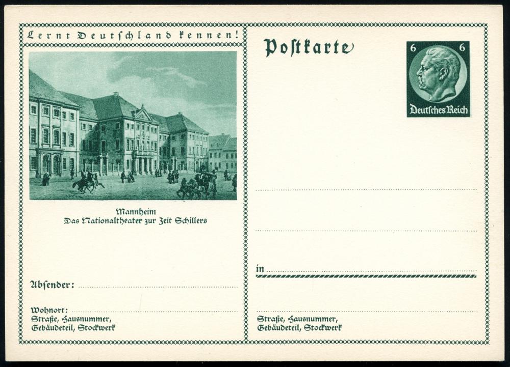 2684 | 12 € | 6800 Mannheim Allgemeine Belege : Mannheim 1933 6 Pf. BiP Hindenbg. , grün: Das Nationaltheater zur Zeit Schillers, ungebr. (Mi.P 221/052) | ![]() | |