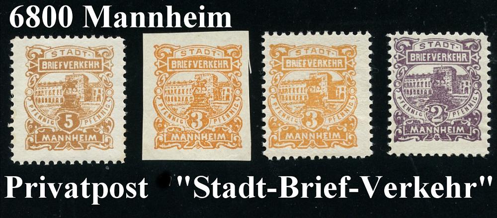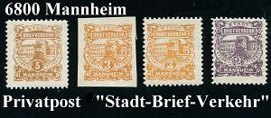 2671 | 20 € | 6800 Mannheim Allgemeine Belege : Mannheim 1895 Privatpost "Stadtbrief-Verkehr" 2 Pf. gez., 3 Pf. gez. und ungez. u. 5 Pf. Schloß gez. (orig. G.) sonst o. G., 4 Maren (Mi.6, 8, 8 U, 9) | ![]() | |