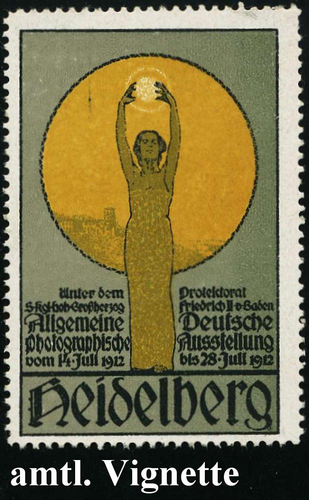 2907 | 14 € | 6900 Heidelberg Allgemeine Belege : Heidelberg 1912 (Juli) gez. Reklame-Vignette: Allgem. Deutsche Photographische Ausstellung (Frau m.Licht) orig.G., selten! | ![]() | |