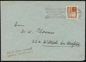 2961 | 14 € | 6900 Heidelberg Maschinen- & Serienstempel : HEIDELBERG/ **I/ ÜBERSEETELEGRAMME/ schnell u.sicher/ ÜBER DEUTSCHE FUNKWEGE 1950 (8.6.) MWST (2 Blitze) auf 4 Pf. Bauten, Bedarfs-Bf. (Bo.S 563 A = Erstjahr) | ![]() | |