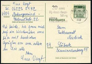 2969 | 12 € | 6900 Heidelberg Maschinen- & Serienstempel : 69 HEIDELBERG 3/ xg/ 20 JAHRE/ Elly-Heuss-Knapp-/ Stiftung/ MÜTTER-/ GENESUNGSWERK 1970 (29.6.) MWSt auf Bedarfs-Kt. (Bo.S 1220 A, nur 7 Monate in 5 Orten) | ![]() | |