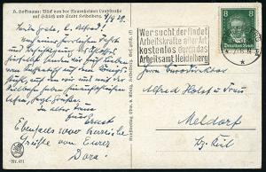 2934 | 15 € | 6900 Heidelberg Maschinen- & Serienstempel : HEIDELBERG/ **II/ Wer sucht,der findet/ Arbeitskräfte aller Art.. 1928 (1.6.) MWSt mit Bibel-Zitat auf s/w.-Ak.: Gesamtansicht mit Schloß + Scheffel-Gedicht, Bedarf (Bo.5 A I , nur 1928 verwendet) | ![]() ![]() | |