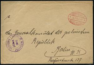 2970 | 18 € | 6900 Heidelberg Post-Freistempel : HEIDELBERG 1/ **/ Gebühr bezahlt 1923 (25.9.) Hand-PFS Oval-Brücke + viol. 2K-HdN: BADISCHES BEZIRKSAMT/ HEIDELBERG , Dienst-Bf. an das Generalkonsulat der polnischen Republik (Berlin) (Dü.A-5, Nr.17) | ![]() | |
