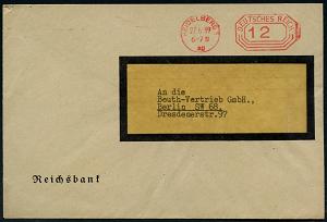 2979 | 15 € | 6900 Heidelberg Post-Freistempel : HEIDELBERG 1/ ag/ DEUTSCHES REICH 1939 (27.6.) PFS "Achteck" 12 Pf. = Briefporto! , Reichsbank-Dienst-Bf. (Dü.D-4) | ![]() ![]() | |