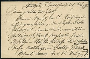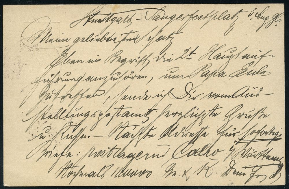 3167 | 40 € | 7000 Stuttgart Allgemeine Belege : STUTTGART/ SÄNGERFESTPLATZ 1896 (3.8.) klassischer SSt 2x klar auf Inl.-P 3 Pf. + Zusatzfrank. 2 Pf., Fernkt. (rs. entspr. Text!) Bedarf! (Bo.1 , nur 4 Tage verwendet) | ![]() ![]() | |