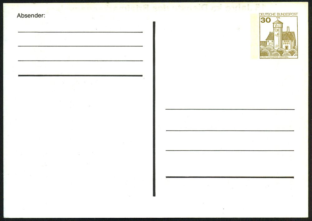 3161 | 12 € | 7000 Stuttgart Allgemeine Belege : Stuttgart-Bad Cannstatt 1978 PP 30 Pf. Burgen, braun: Deutsch-Amerikanische Briefmarken-Club = Liberty Statue, TV-Turm, Flaggen USA, BRD , ungebr. (Mi.PP 98/7 a) | ![]() ![]() | |