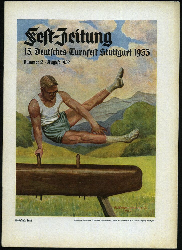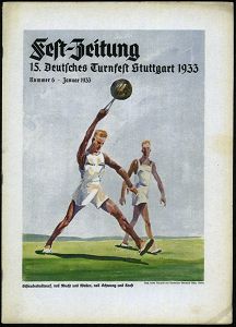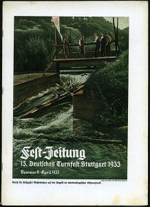3144 | 120 € | 7000 Stuttgart Allgemeine Belege : Stuttgart 1933 "Fest-Zeitung 15. Deutsches Turnfest Stuttgart 1933", Heft 1 bis 15 komplett gebunden im Leinenband mit rot-goldenem Titel , farbige Titelseiten, zahllose Fotos und Berichte, interess. Sport-Reklamen, viele Sportarten Leichtathletik und Turnen, Berichte über Sport-Pioniere u. Landeskunde, 494 Seiten insges., außergewöhnlich erstklassige, fast druckfrische Erhaltung! | ![]() ![]() ![]() ![]() ![]() ![]() ![]() ![]() ![]() ![]() | |