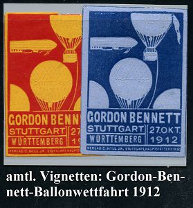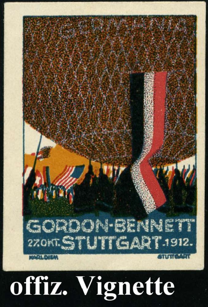 3130 | 15 € | 7000 Stuttgart Allgemeine Belege : Stuttgart 1912 (Okt.) ungez., amtl. Color-Vignette: GORDON-BENNETT (Ballon, Flaggen) orig.G. | ![]() | |